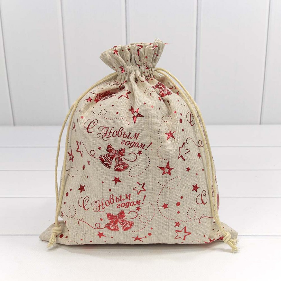 Купить Мешочки из искусственного льна 26*32 с рисунком С новым годом цена 110 руб. в Москве и СПб с доставкой по России