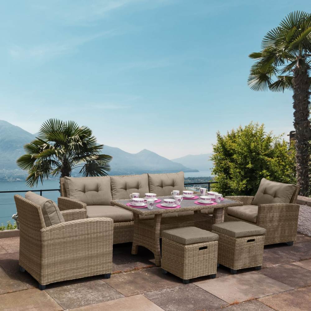 У нас вы можете приобрести подушки, предназначенные для обеденного садового комплекта AFM-310B Beige, в наборе находятся подушки для дивана, двух кресел, а также двух пуфов. Сами подушки выполнены в бежевом цвете. Они подойдут для дивана, ширина которого составляет 170 см, глубина 67 см, а высота 73 см. Также есть подушки для двух кресел, ширина которого составляет 67 см, глубина 66 см, а высота 73 см. Для пуфа, ширина которого составляет 40 см, глубина 40 см, а высота 45 см.