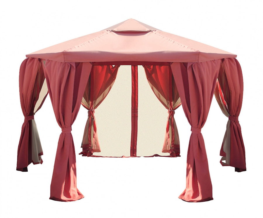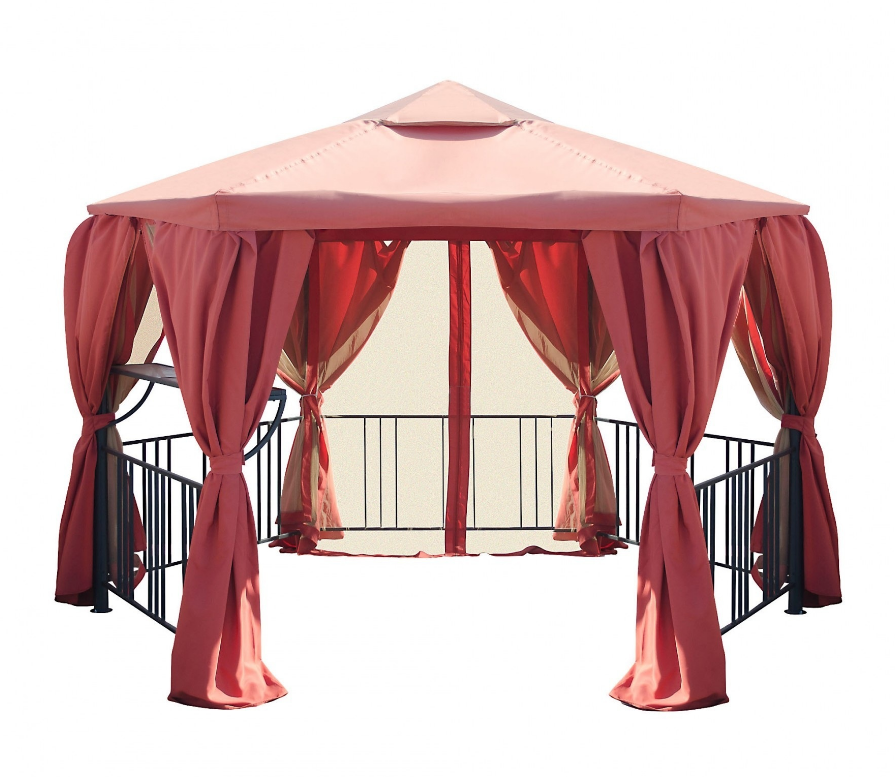 Хотим предложить вам купить запасной комплект для павильона Blooma Creola. Комплект выполнен в красном цвете, кроме того, он может иметь любые другие цвета. Благодаря такому изделию ваш отдых станет более комфортным, оно способно защитить от осадков и солнечных лучей. Данный комплект изготовлен из водоотталкивающего полиэстера, у него есть антимоскитная защита, а также шесть плотных боковых штор, размер которых составляет 1,75 и 1,75 м. Такие москитные сетки и шторы снабжены очень удобными застёжками. Из особенностей данного изделия можно выделить то, что оно имеет шестиугольную форму, а изготовлено из материала полиэстер с плотностью 93 г/м². У тента есть антимоскитная сетка, а сам он является влагоотталкивающим.