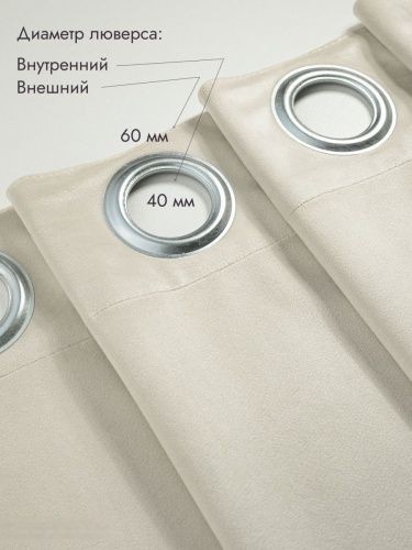 Краткое описание «Штора для примерочной и дома на люверсах бархатная цвет бежевый, 1 шт»