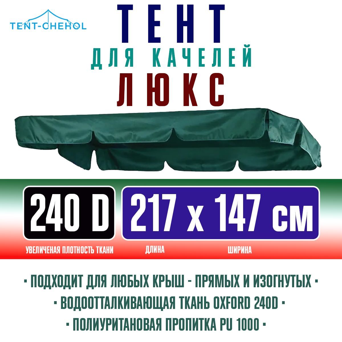 Купить Тент для садовых качелей Люкс, зеленый, 217х147 цена 1500 руб. в Москве и СПб с доставкой по России